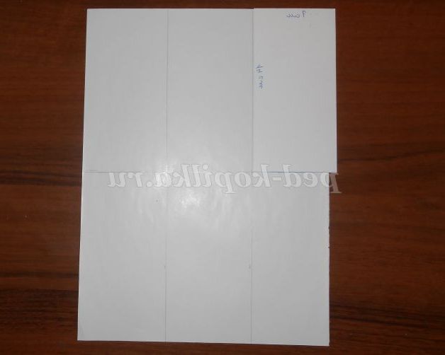- Хлопці, покладіть перед собою аркуш картону. Беремо в руки лінійку і зверху по горизонталі відкладаємо 7 см і по вертикалі відкладаємо 14 см з одного боку і з іншого, проводимо лінію. Потім беремо ножиці і вирізаємо. Залишився лист відкладіть в сторону. Тепер беремо в руки шаблон і олівець. Прикладаємо шаблон на лист кольорового паперу і обводимо його. Дуже близько до отриманого листком знову прикладаємо шаблон і теж обводимо його і т. д. до кінця аркуша.