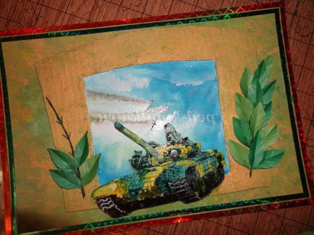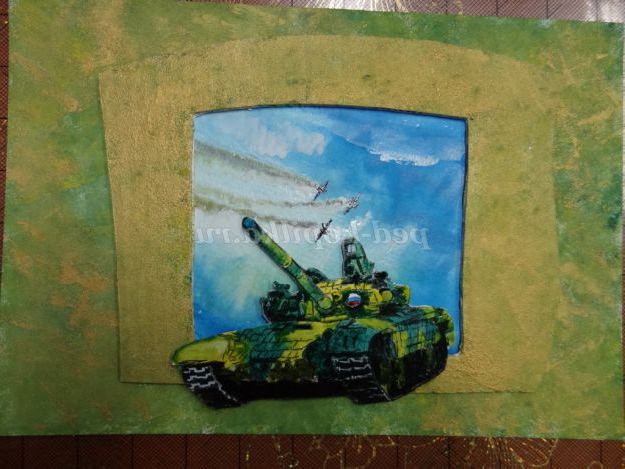 Опис матеріалу: отримувати подарунки приємно отримувати подарунки, зроблені своїми руками - приємно подвійно. Не знайдеться жодного тата, дідуся або старшого брата, який не зрадів би, отримавши на день Захисника Вітчизни танк, нехай і намальований. Зробити листівку своїми руками зовсім не важко, в чому ви можете переконатися, вивчивши майстер-клас.
