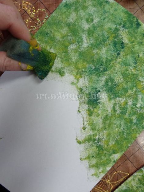 5. На аркуші білого щільного картону і на рамці, за допомогою поролону та гуаші зробити фон. (Малюнок 9) (Малюнок 10)
