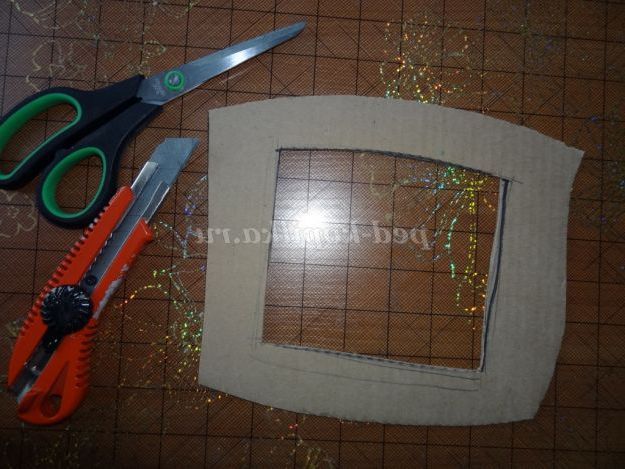 3. На коробковому картоні намалювати (довільно) рамку і вирізати по контуру. (Малюнок 6) (Малюнок 7)