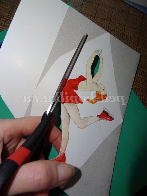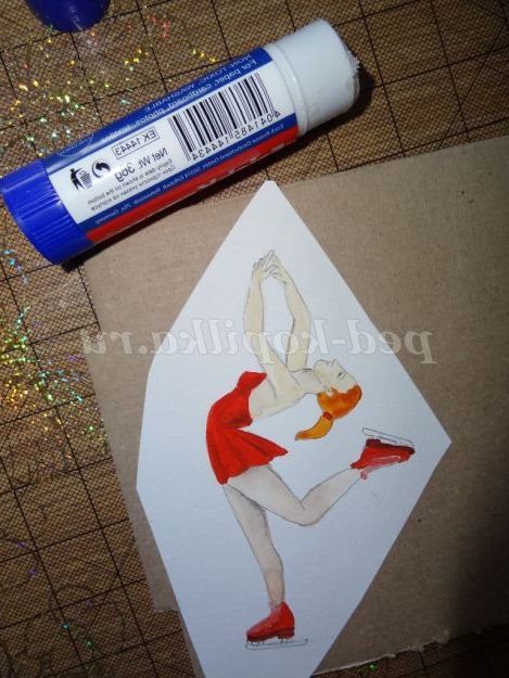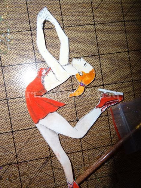 1. На білому картоні або білому цупкому папері намалювати гуашшю (фарбами) фігуру фігуристки.