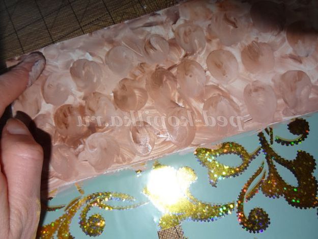 10. З кольорової фольги з візерунком, вирізаємо смужку 9 см / 25 см і наклеюємо на отримане огорожу