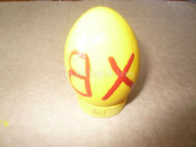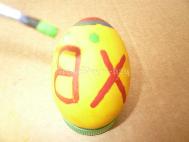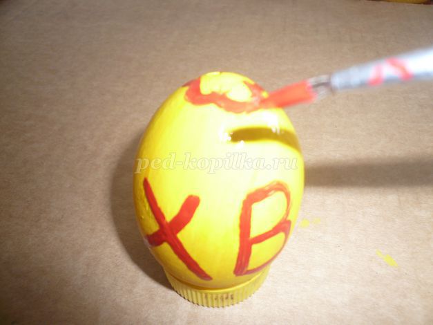 Намалювати в середині яйця напис ХВ (це означає - Христос воскрес), для цього потрібна гуаш червоного кольору і кисть № 2.
