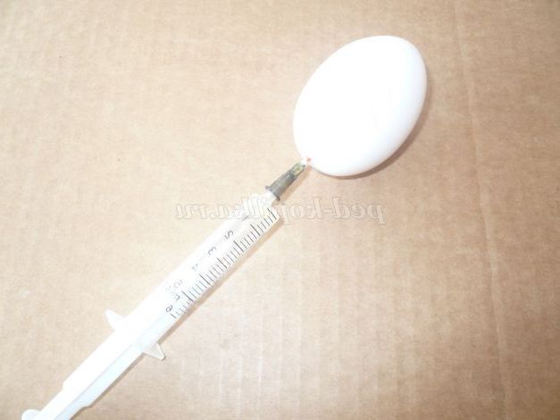 Перед використанням яйце бажано ретельно промити. Збовтати кілька разів і проткнути голкою в двох протилежних кінцях. Отвори обережно розширити на 2-3 мм. Витягнути стерильним шприцом вміст яйця. Знову промити і витерти насухо.