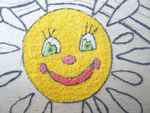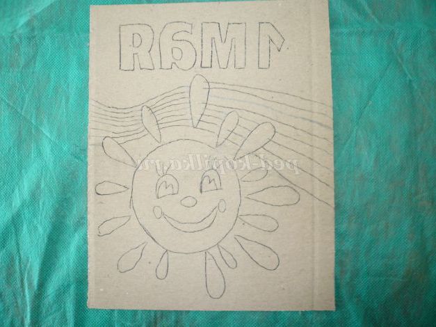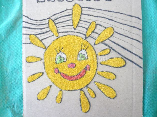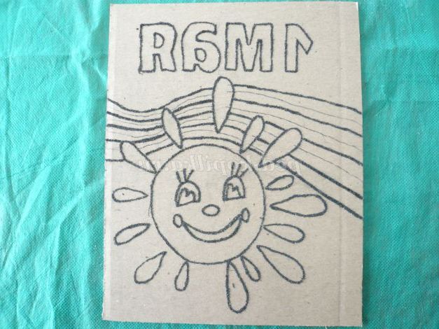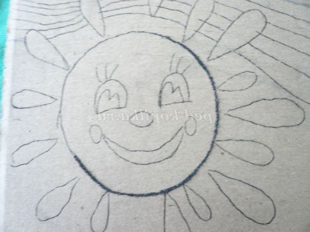 На картоні, малюємо сонечко, подрисовываем йому, кумедне личко, з очима і ротом.