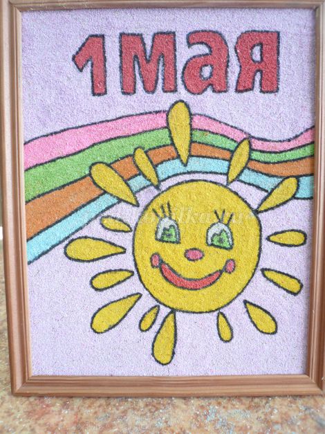 Майстер - клас " Мозаїчна аплікація з пофарбованих тирси до 1 травня"