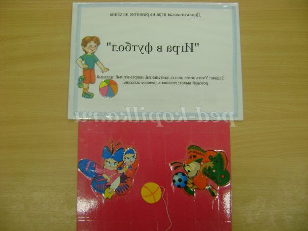 А потім можна запропонувати пограти метеликів у футбол. Тут вже один предмет на двох - м'яч, який з допомогою дихання треба переміщати. Пропонується двом дітям по черзі дути на нього, забиваючи гол.