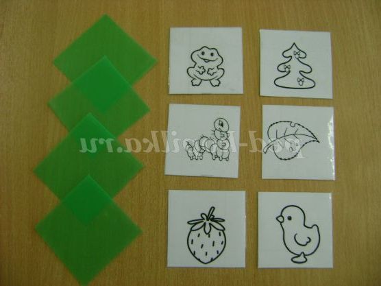 Хід гри: вихователь запитує дітей, якого кольору скельця лежать на столі (зеленого).