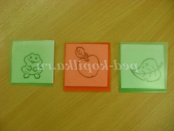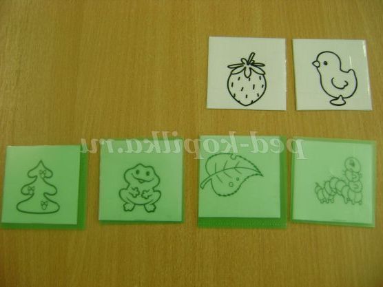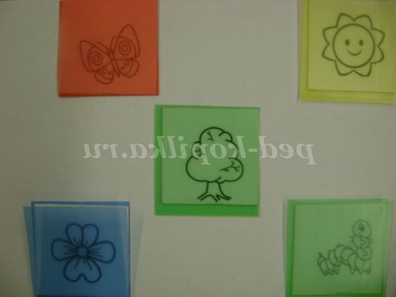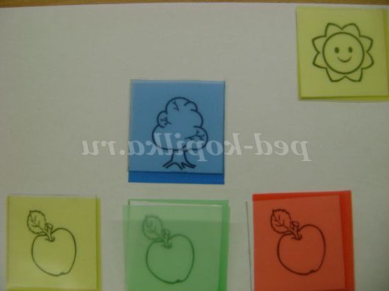 Хід гри: вихователь пропонує кожній картинці підібрати кольорове скельце і розфарбувати її.