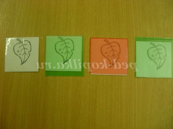 Хід гри: вихователь пропонує дітям розглянути викладені в ряд різнокольорові листочки і подумати, який листочок треба покласти наступним, щоб продовжити ряд.
