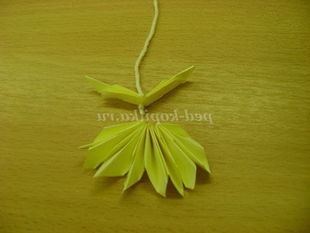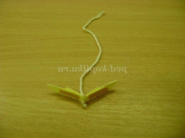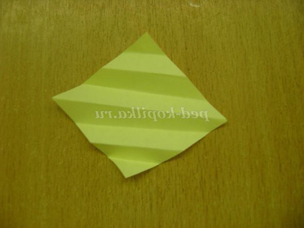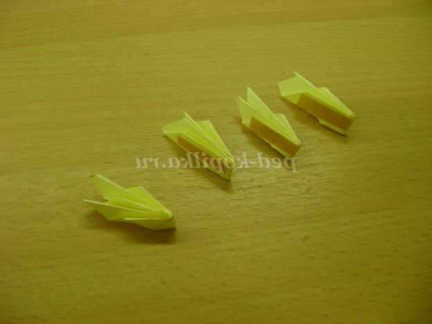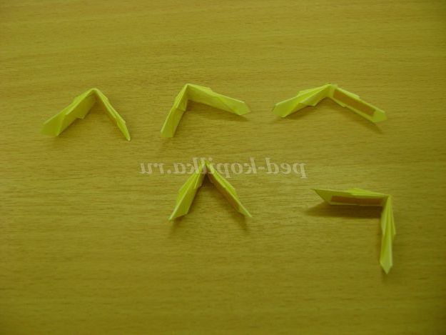 8. Беремо отриману заготовку і складаємо його навпіл. Вийшов модуль у вигляді галочки.