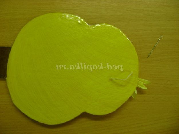 Роботу виконуємо з 2-ух сторін. Накладаємо другий шар гуашевого фарби. Можна покрити поверхню деталей прозорою плівкою, що самоклеїться