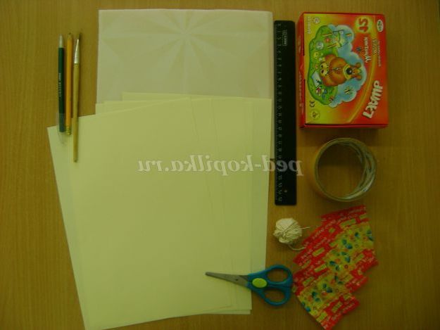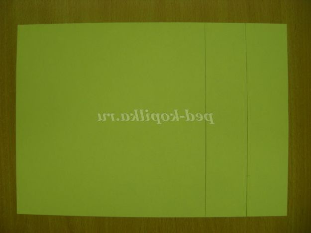 6. Беремо ксероксную папір жовтого кольору, лінійку, олівець і расчерчиваем вертикально смуги шириною 5 см.