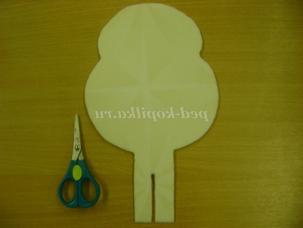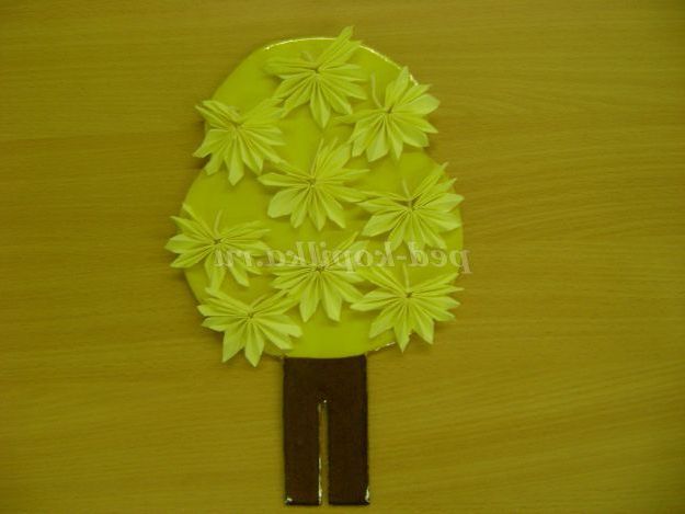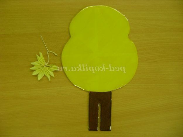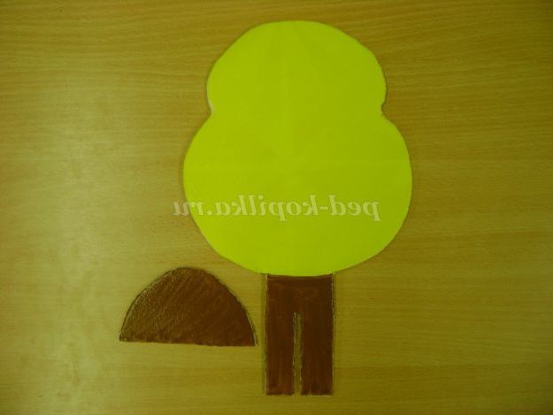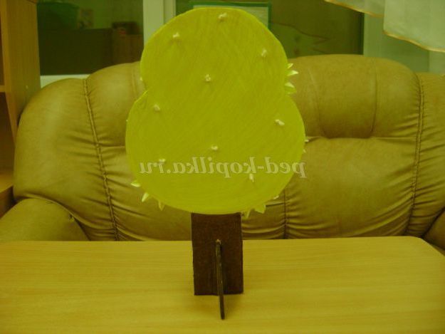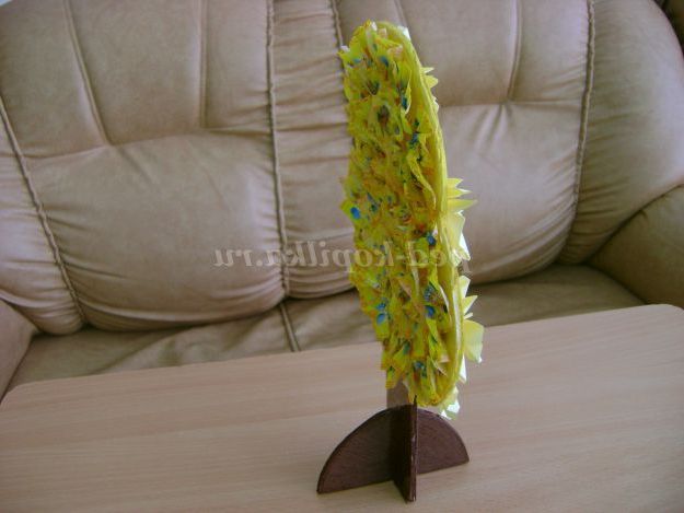 5. Розфарбовуємо крону дерева жовтим кольором, а стовбур і підставку коричневим з допомогою гуаші.