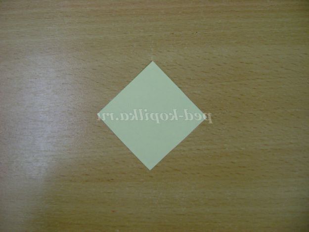 7. Беремо один з квадратів і маємо його у вигляді ромба так, щоб один з його куточків був спрямований вниз.