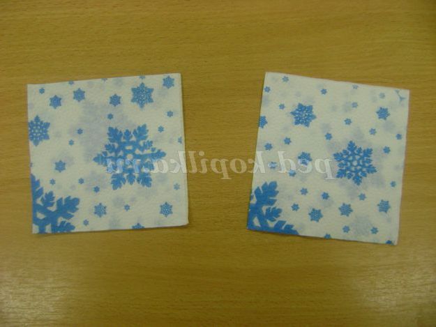 1. Взяти упаковку з цукеркової коробки. Нарізати її на клітинки. Для однієї сніжинки нам знадобиться пара таких осередків. Це робить педагог.