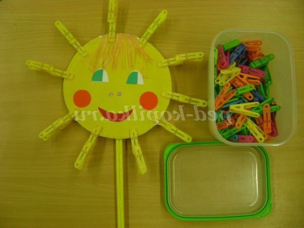 -З чого ж ми зможемо зробити промінчики? (з прищіпок)
