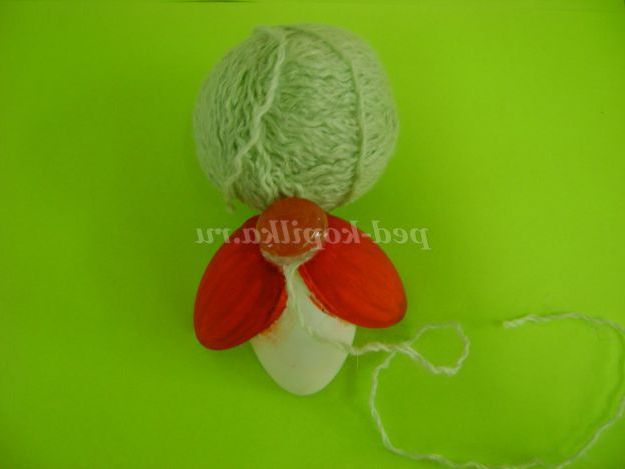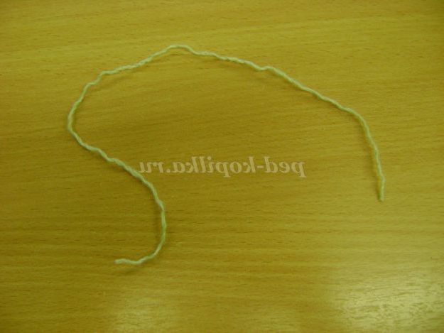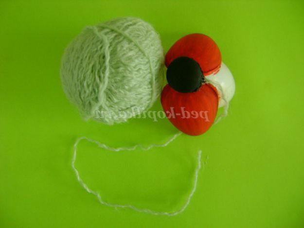 5.От клубка ниток відрізаємо нитку довжиною приблизно 20-25 см. Колір ниток може бути будь-якою. Довжина нитки може бути різною, в залежності від того, куди ми потім прикріпимо божу корівку.