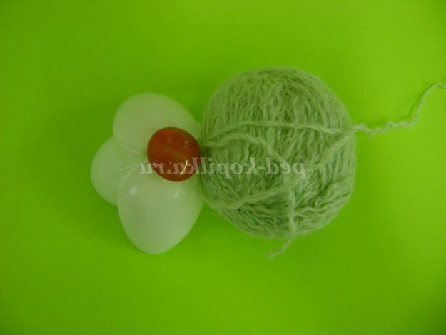6. Візьмемо декоративний камешек.И з допомогою клею-пістолета приклеїмо в тому місці, де приклеїли нитка