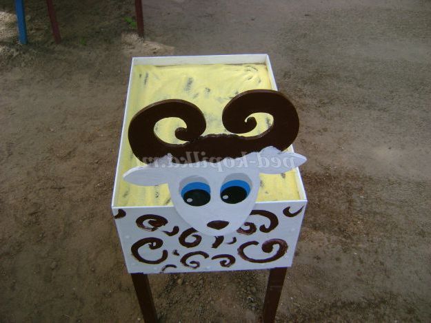 Баран зроблений з фанери, для ніг використані дерев'яні бруски. Зверху закріплено оргскло. Для малювання можна використовувати і пісок.