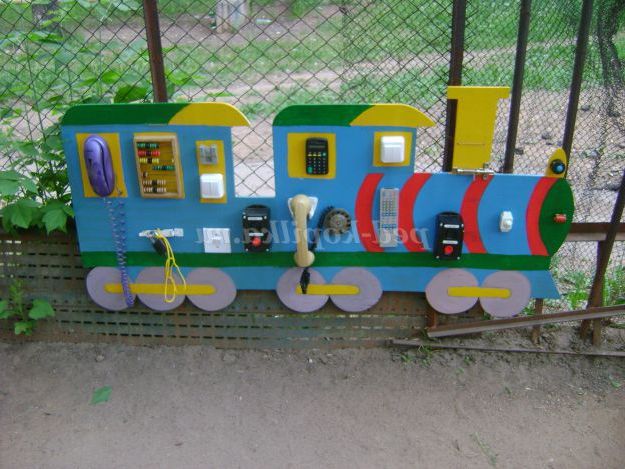 На ньому закріплені різні пристосування, які можна закривати, натискати, защипуються, включати, крутити і т.д.