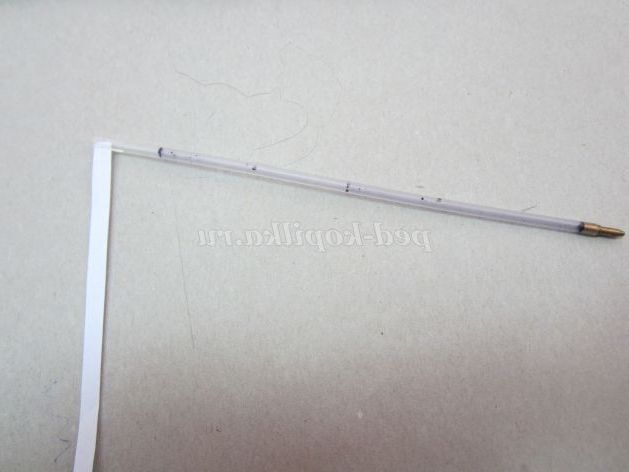 Для роботи в техніці квіллінг ми з дітьми використовуємо стрижень не ручки. Не у всіх є можливість придбати спеціальну голку, так і в нашому невеликому містечку часом буває важко знайти необхідні інструменти. Тому доводиться використовувати підручні засоби і вигадку. Робимо надріз на кінці стрижня. В цей надріз вставляється смужка паперу і накручується. Смужка не виїздить і не зісковзує, що дозволяє хлопцям більш впевнено накручувати барила.