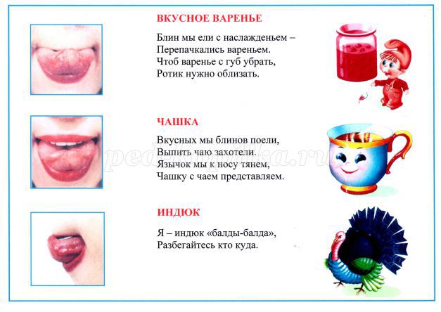 Мета: зміцнювати м'язи кінчика мови, виробляти підйом мови вгору і вміння робити кінчик язика напруженим.