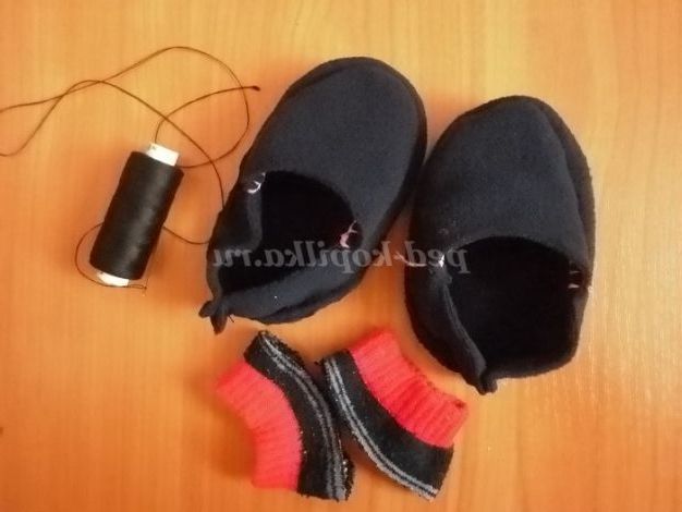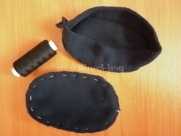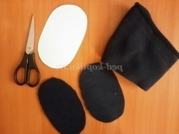 Матеріал: гумки від шкарпеток (пара); ножиці; фетр; картон для шаблонів; голка; - нитки - чорна і рожева.