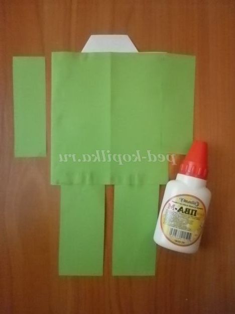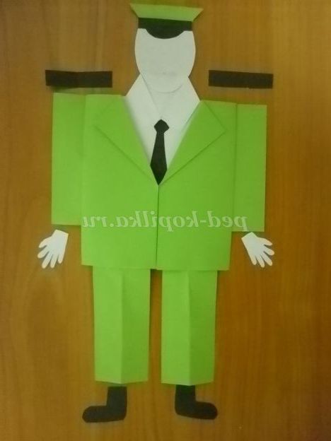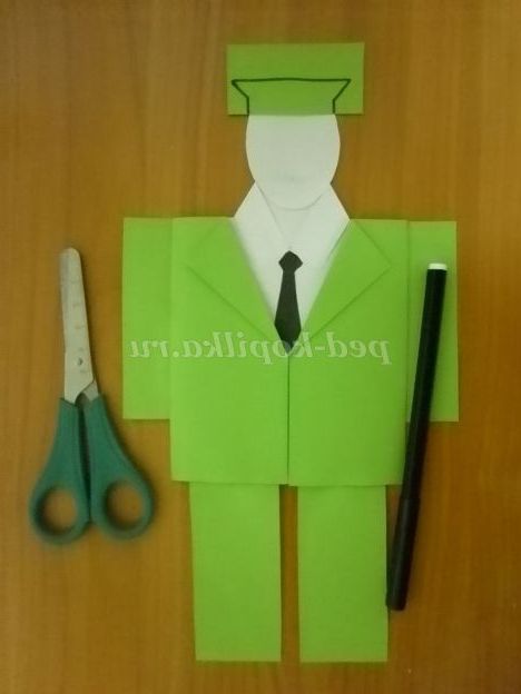 20.Дело залишається за малим! Малюємо і вирізаємо заготовки рук, взуття, погонів і зірочок на погони і кашкет, а потім все це приклеюємо!