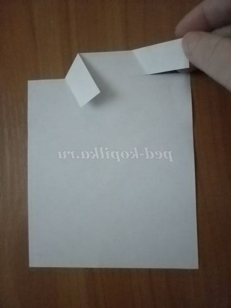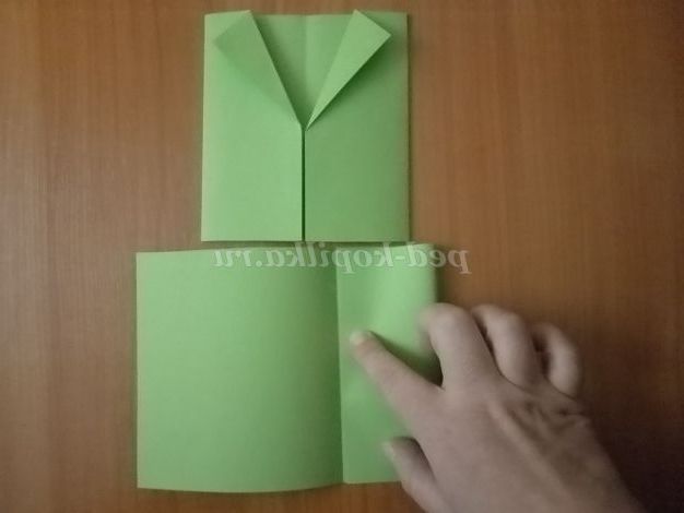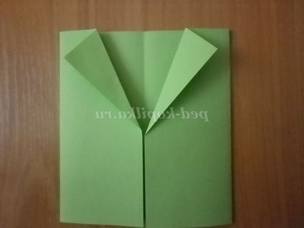 7. Щоб зробити закоти піджака, згинаємо верхні куточки заготовки. Піджак готовий!