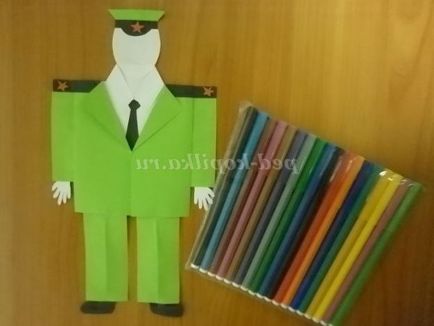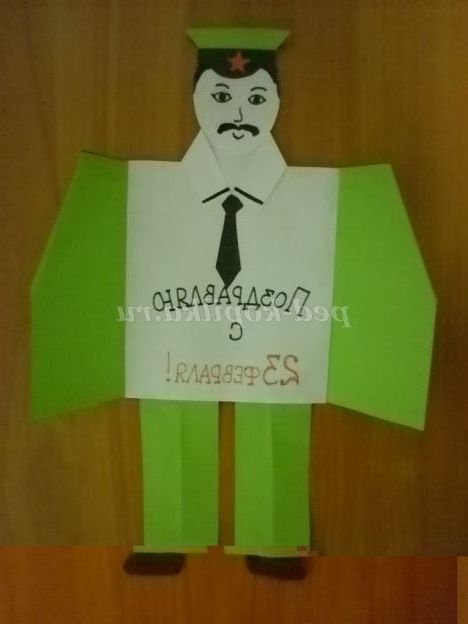 1. Пропоную зробити таку вітальну листівку у вигляді солдата на свято - 23 лютого.