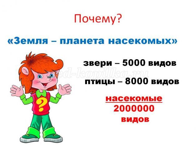 - На іграх ми ставимо цікаві запитання і намагаємося на них знайти відповідь. Подумайте, чому вчені кажуть: «Земля - планета комах»?