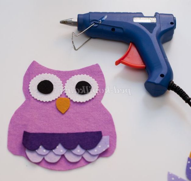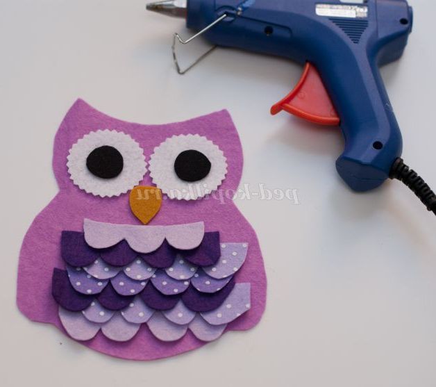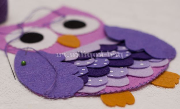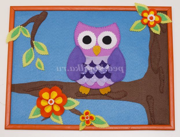 Фетр вважається найзручнішим матеріалом для аплікації з тканини. З фетром дуже зручно працювати, так як він ставиться до нетканим матеріалами, а значить, краю вирізаних фрагментів не обсипаються. Тому працювати з фетром люблять як діти, так і дорослі! В цей раз представляю вам покрокове виконання аплікації «Сова». Такого плану аплікації будуть прекрасним декорування дитячої кімнати або групи дитячого саду.