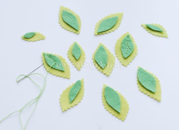 Приступаємо до виконання листочків. Вирізаємо по шаблону листочки двох кольорів.