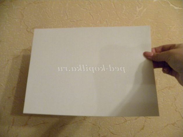 2. Перевертаємо білий картон на виворітну сторону: ділимо його навпіл злитої лінією.