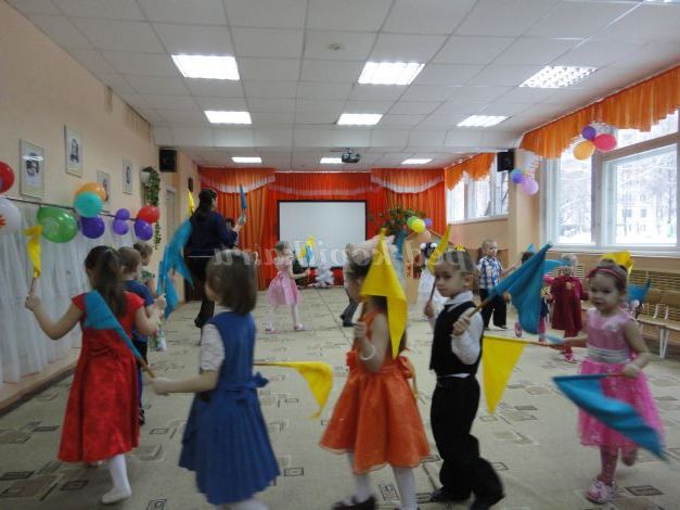 Ведуча: Діти, сьогодні ми святкуємо День Народження Російської Армії і Військово - Морського флоту. Солдати і командири нашої Армії охороняють мирне життя. Легкої службу не назвеш. Треба бути сильним, щоб не втомитися, сміливим, щоб не злякатися. Щоранку солдат робить зарядку. Наші діти теж хочуть вирости сильними і спритними. На зарядку ставай!