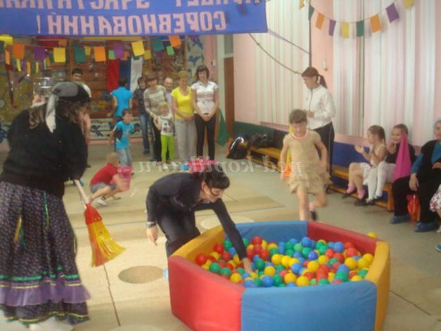 Обладнання: кулі, м'ячі, гімнастичні палиці, сухий басейн, мішечки з крупою, машинки, пляшечки, стрічки, сік, мішки, скакалки, фіто - чай, подарунки, грамоти, музичний супровід, табло з результатами.