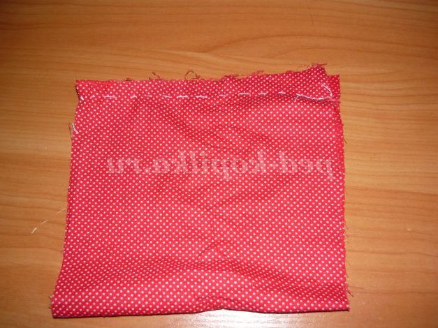 Тепер робимо шапочку. Беремо прямокутник червоного кольору, складаємо навпіл і сметываем.