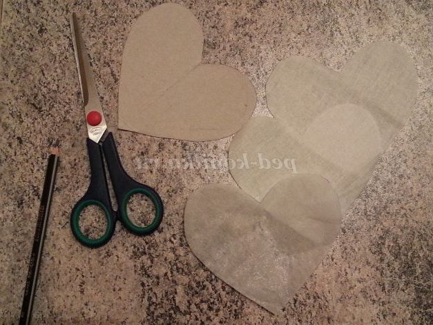 10. Вирізаємо два серця з тканини і одне або два з флізеліну (залежить від того, яку ви хочете щільність крил). Проклеюємо за допомогою праски.