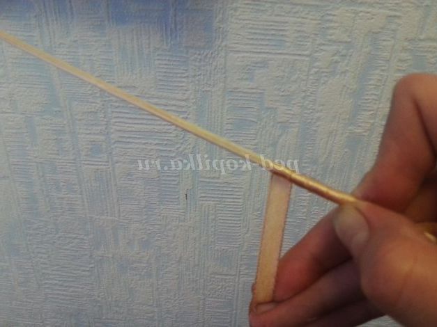 6. Дерев'яну шпажку обмотуємо атласною стрічкою, капаючи трохи клею на кожну ділянку.