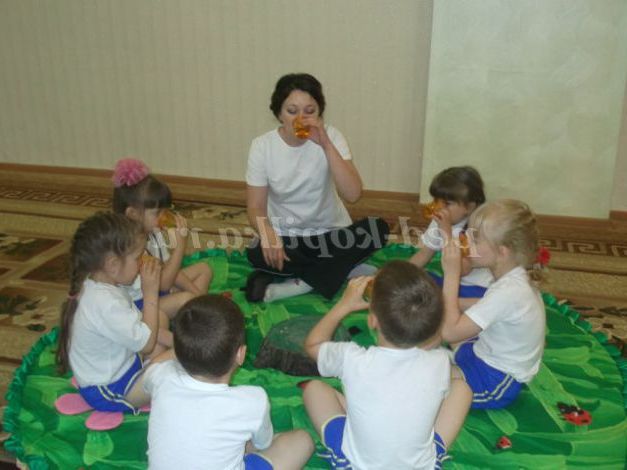 Вихователь: - Ми з вами вийшли на чудову лісову галявину. Втомилися? Дивіться, про нас хтось подбав, приготував нам воду. Давайте присядемо, відпочинемо. Закрийте очі і уявіть, щоб ви зробили, якби стали добрими чарівниками. А тепер відкрийте очі і уявіть, що ви чарівники. Давайте перетворимо нашу воду в чарівну, щоб вона зняла нашу втому і додала нам здоров'я.