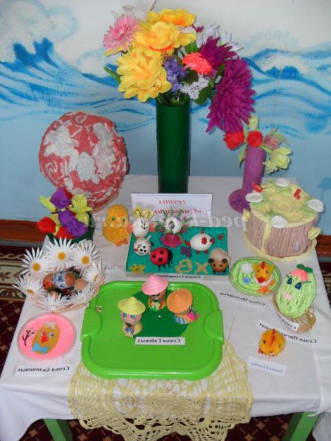«Великодній ярмарок! » У якій активну участь беруть батьки, діти, педагоги, створюють вироби, листівки, прикрашають групи. . Була проведена "Великодній тиждень" на якій ми проводили: бесіди і розповіді "Що за свято - Великдень? ", "Як святкували Великдень на Русі" . Батьки вихованців виявили незвичайну фантазію і вигадку, а так само показали свою майстерність і творчість.