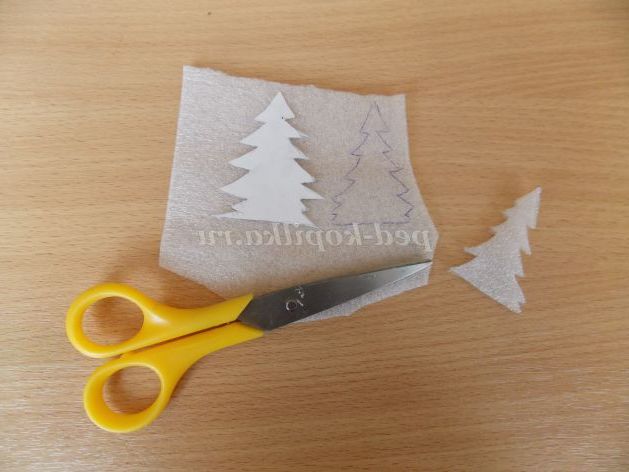З більш тонкого пінополіетилену за шаблонами вирізаємо ялинки.
