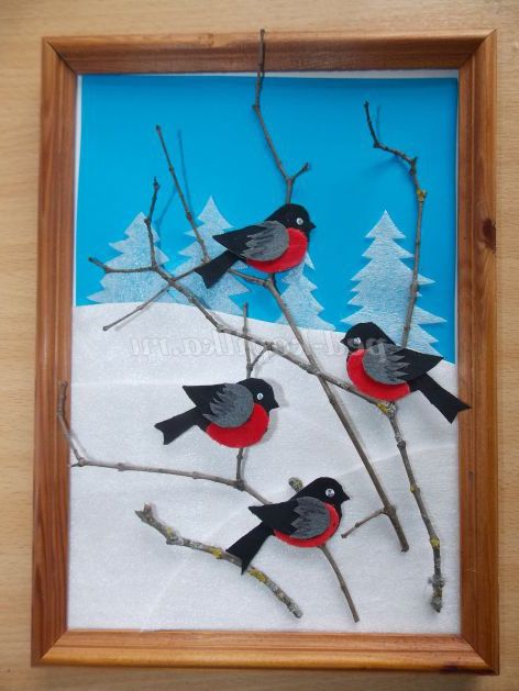 Залишається тільки приклеїти наших снігурів до гілочок. Їх кількість на картині може бути будь-яким, в залежності від вашого бажання.