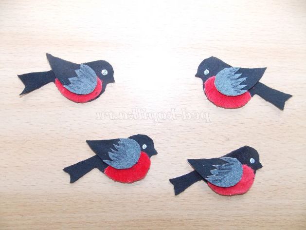 Приступаємо до виготовлення снігурів. Для цього можна використовувати оксамитову папір або шматочки тканини, наприклад велюру або оксамиту, тільки їх необхідно попередньо приклеїти до паперу і висушити.
