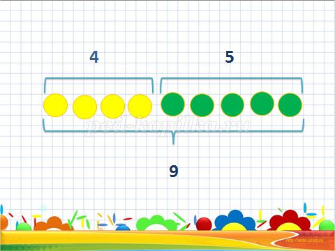 (На стоянці стояли 4 легкові машини і 5 вантажівок, скільки всього машин було на стоянці?)