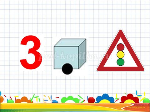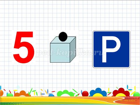 Матеріали та обладнання: презентація «слідами м'ячика Непосиди», мультимедійне обладнання, набори цифр і знаків на кожну дитину, «Танграм» на кожного дитини, листок в клітинку, олівець, розмальовка «З'єднай крапки від 1 до 10»