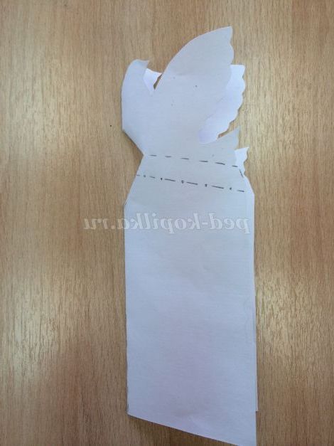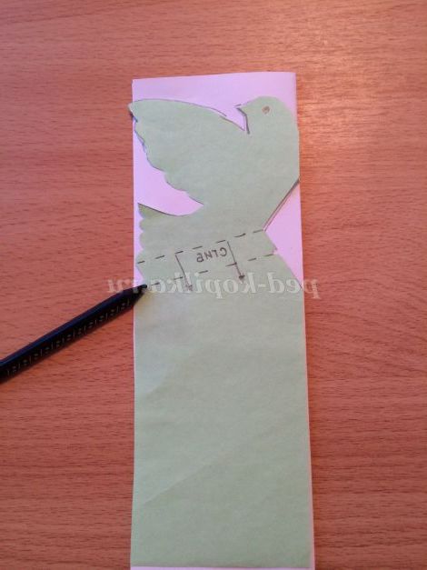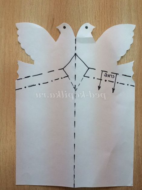 За жирним суцільним лініях вирізаємо контур голуба, так само вирізаємо контур трикутника тільки за жирною суцільної лінії, тобто до пунктирної лінії.