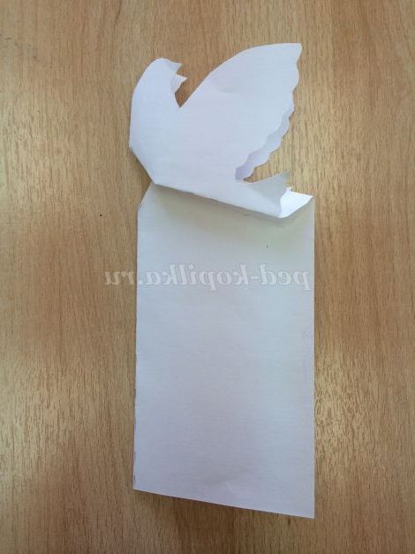 Трикутник під грудкою голуба заправляємо всередину листівки.