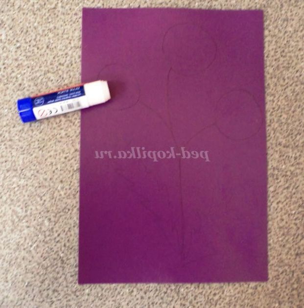 2. Робимо начерк квітки на аркуші кольорового картону простим олівцем.